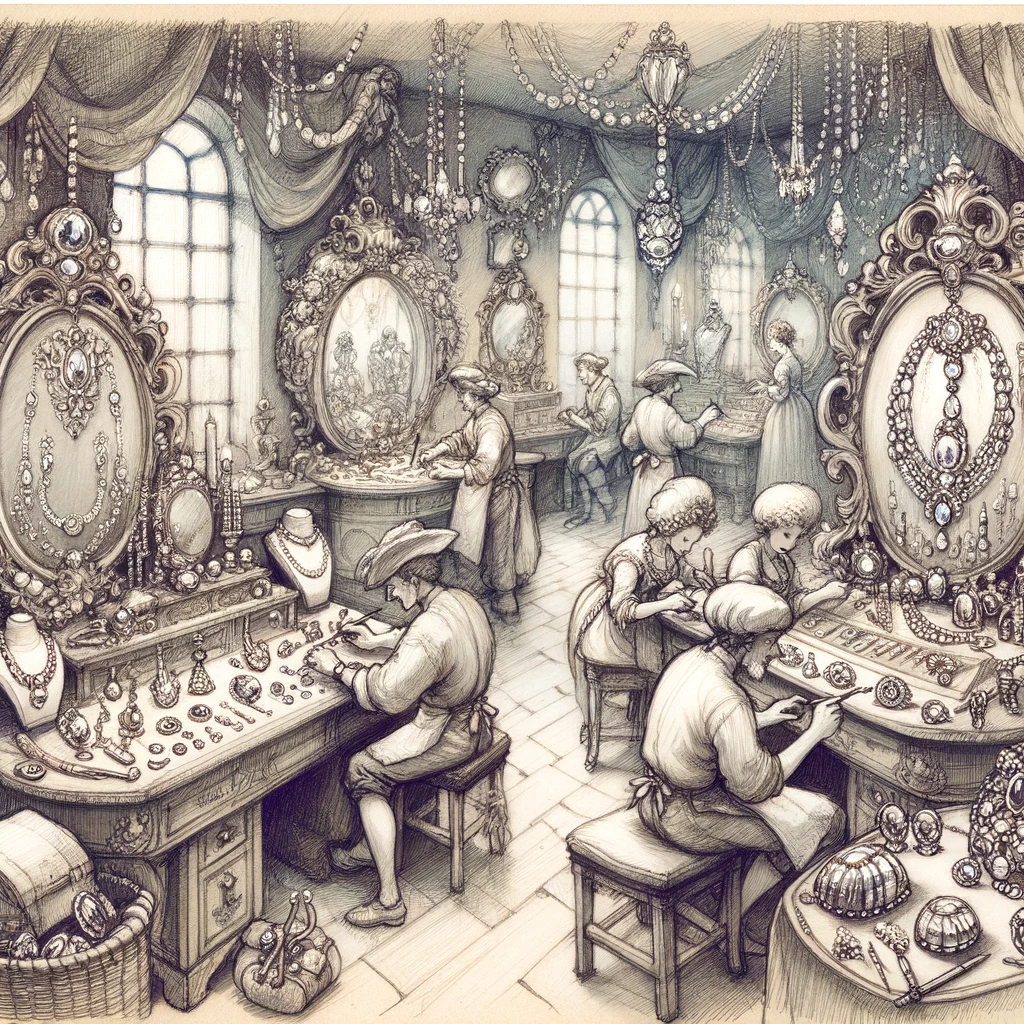 - Centres de Production : Paris, en tant que centre de l’art et de la mode, joue un rôle clé dans l’évolution de la bijouterie, tout comme d’autres villes européennes telles que Venise et Londres, où des ateliers d’orfèvres et des maisons de joaillerie rivalisent de créativité et d’innovation.